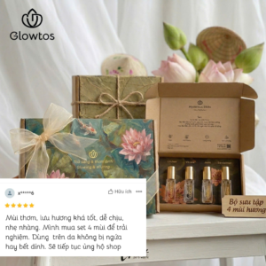 4. Bạn vừa trải qua một ngày dài với công việc, deadline, bụi đường… Và không có nhiều thời gian để sửa soạn gặp bạn bè, crush hay người yêu? Bộ 4 mùi nước hoa dưỡng không cồn Glowtos chính là “nước hoa bỏ túi” lý tưởng để bạn làm mới chính mình – nhanh chóng, tinh tế, có sẵn 4 mùi trong túi xách, tự tin chọn mùi theo hoàn cảnh mà không cần lo lắng.